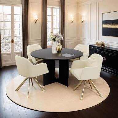 Takket være den romslige seteskålen, den gjennomgående ryggstøtten for armer og rygg samt den høydensitets skumgummipolstringen, nyter du maksimal komfort og optimal støtte for sittestillingen din – perfekt for lange middager eller sosiale sammenkomster. Det ekstra fine fløyelstrekket sørger ikke bare for en supermyk følelse, men også for et elegant utseende.
