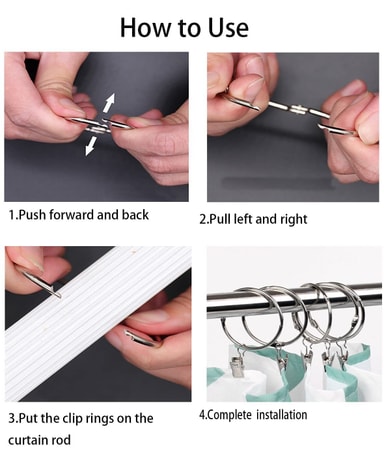 Designet med spesielle åpningsbare gardinringer, gjør gardinringene at du enkelt kan feste eller løsne gardiner på gardinstenger uten at du trenger å ta ned hele stangen. De er laget av førsteklasses metall for lang rustsikkerhet.