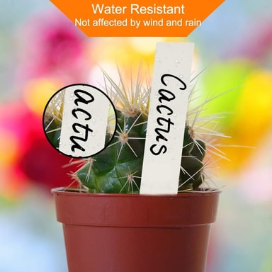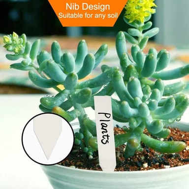 Slitesterke planteskilt laget av vannavstøtende PVC som ikke ruster, råtner eller knekker. Planteetiketten har en tupp som stikker ned i jorden. Teksten kan tørkes av, og du kan bruke planteetiketten igjen.Les mer om produktet
