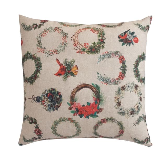 Pute JUL 45x45cm, julemønster. Materiale: 50% bomull, 50% polyester, stoff 290. PLEIE: kan vaskes i maskin ved en temperatur på 30°.