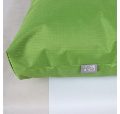 Pute MR. BIG 60x80xH16cm, grønn. Pute MR. BIG er laget av værbestandig polyesterstoff med PVC-belegg og er fylt med spesialgranulat som tilpasser seg kroppsformen til sitteren. Pellets ligger i innerposen og kan enkelt tilsettes ved behov. Varen passer godt inn i ethvert interiør, både hjem og kontor, stue og barnerom. Takket være det værbestandige stoffet kan produktet også brukes utendørs. Materiale: 100% polyester. PLEIE: når du rengjør overflaten, bruk vaskemiddel og skyll under rennende vann.