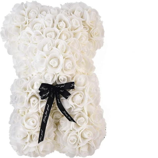 Fint håndarbeide: Denne Rosbjörn er laget av kunstige blomster som holder seg vakre lenge, slik at bamsen din kan finne sin plass som en vakker interiørdetalj i hjemmet ditt.