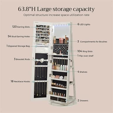 Roterbart speilskap for sminke og smykker - HvitLes mer om produktet