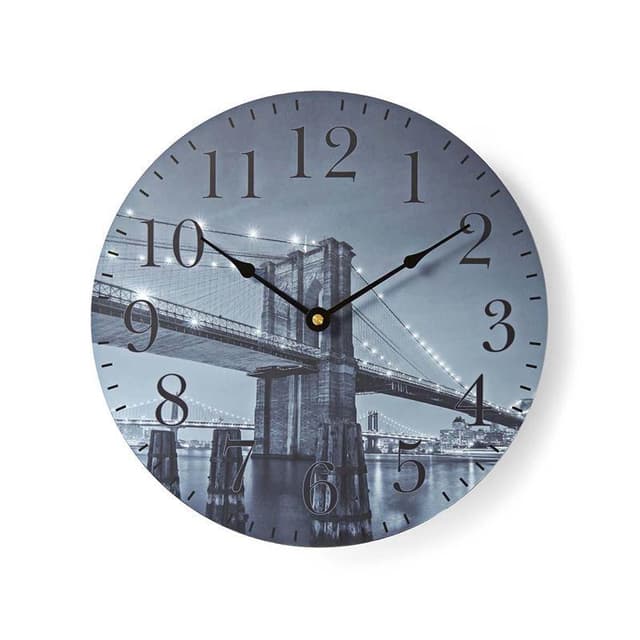 Til alle som elsker det moderne, urbane livet, anbefales denne runde Nedis®-veggklokken som har et stemningsfullt bilde av Brooklyn Bridge i New York. Klokken har en diameter på 30 cm, er enkel å henge på veggen, bruker 1 stk. AA-batteri (ikke inkludert) og er utstyrt med kvartsteknologi for presisjon og nøyaktighet.