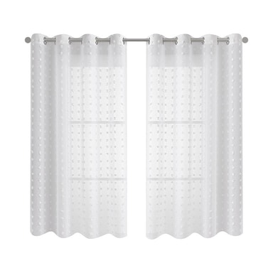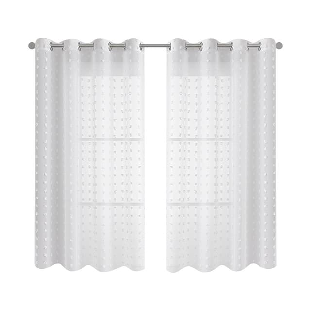 Sett med 2 Dot Pom Pom Sheer Gardiner - Voile Vinduspaneler med Maljer Hvit L