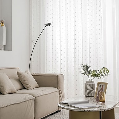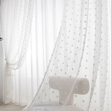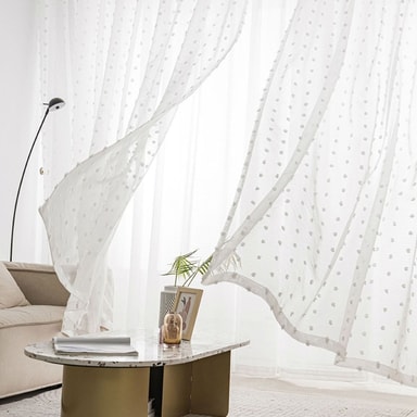 Forbedre hjemmeinnredningen din med disse dot pom pom lette gardinene. Disse voile vinduspanelene filtrerer lyset mykt og gir et sjarmerende preg til ethvert rom. Perfekt for stuer, soverom og barnerom.Les mer om produktet