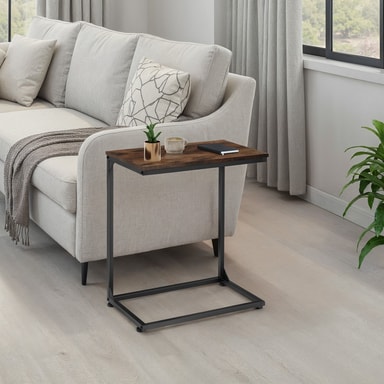 Uansett om det er en kopp te, ei bok eller en bærbar datamaskin - den stilfulle kornete overflaten på Cardiff-sidebordet fra tectake har plass til alt som du trenger til en behagelig pause eller til å jobbe effektivt. På grunn av den valgte konstruksjonen på dette sidebordet som er en åpen C-form, kan den moderne konstruksjonen lett puffes inn under en seng eller en sofa. Den filigran og minimalistiske konstruksjonen resulterer i et spissfindig utseende som harmonerer perfekt med andre elementer i rommet. Tross sin slanke form sikrer den solide stålrammen på bordet og de høydejusterbare plastikkføttene en funktsjonell stabilitet - ganske enkelt en tiltalende innretningsidé: det praktiske Cardiff sidebordet fra tectake.