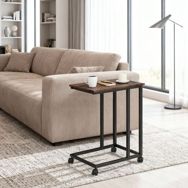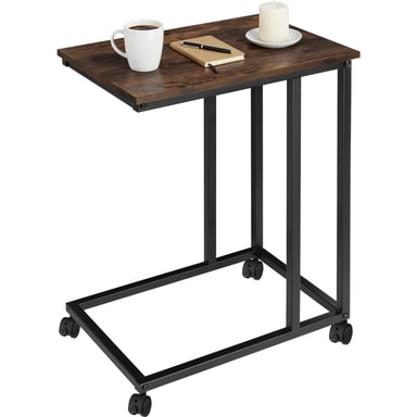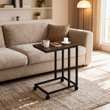 Til alle dem som liker å spise frokost på sengen eller som foretrekker å slappe av på sofaen er det mobile sidebordet Luton fra tectake noe man absolutt bør ha! Den stabile konstruksjonen glir ganske lett inn og ut under møblene på de fire lettløpende hjulene som har låsebremser - så hyllen kommer til deg istedenfor omvendt. Den praktiske bordflaten imponerer med sitt stilfulle mønster, hvor en bærbar datamaskin, en kopp te eller en snack kan stå perfekt. Det lettstelte møbel får sitt luftige og lette utseende fra sin minimalistiske konstruksjon i et industrielt look som understrekes av den asymmetriske C-formen - det fine Luton sidebordet har en fin form uansett innstilling.