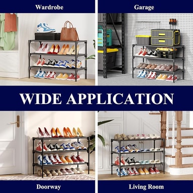 Solid metallkonstruksjon: Dette skostativet er bygget med en sterk metallramme og tilbyr utmerket stabilitet og vektkapasitet. Den slitesterke konstruksjonen sikrer langvarig ytelse, selv ved regelmessig bruk. Den elegante, svarte finishen gir et snev av moderne eleganse til ethvert rom.