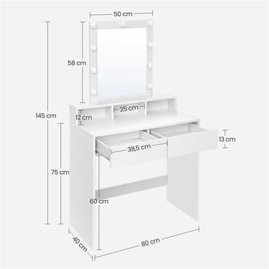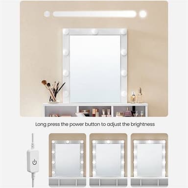 Sminkebord med LED-speil - Justerbar Belysning, Romslig OppbevaringLes mer om produktet
