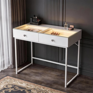Skapet i sminkebordet har innebygd LED-lysstrip med myk lys, som skaper en varm make-up-atmosfære. Lysstyrken er justerbar.