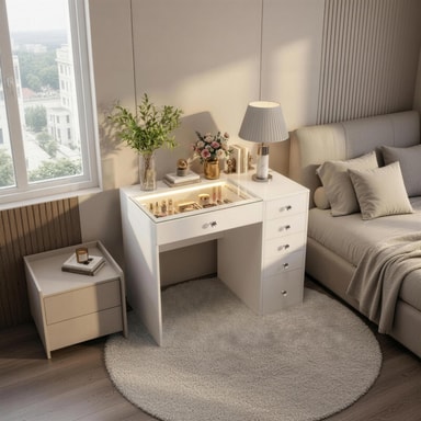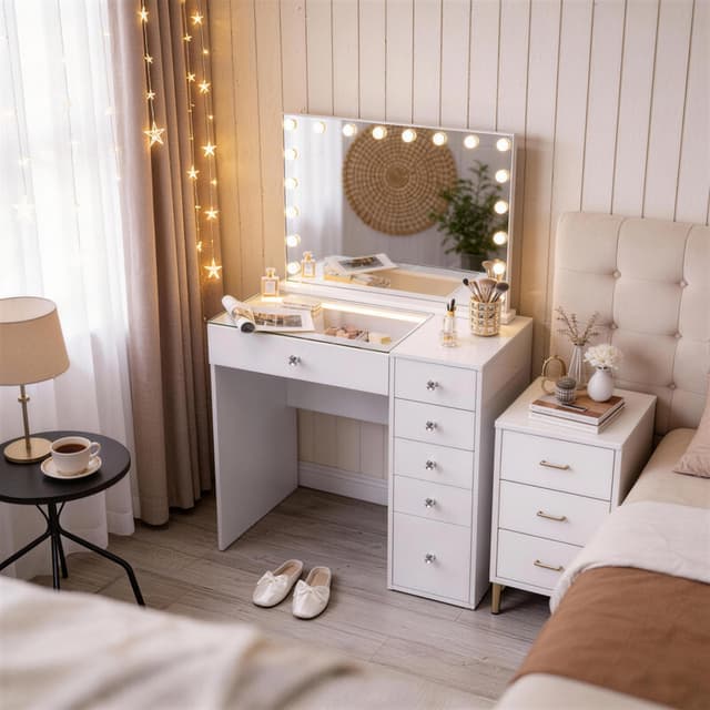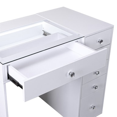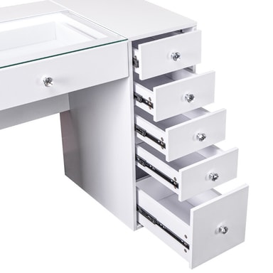 Utstyrt med 6 store oppbevaringsskuffer som glir glatt og stille, og gir rikelig plass til alle kosmetikkprodukter.