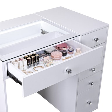 Med 6 store skuffer, glatt og stille gliding, gir rikelig plass til all kosmetikkutstyr.