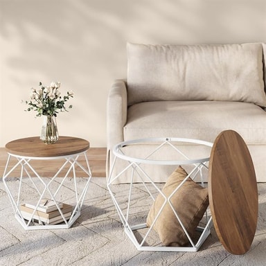Uansett om bordene brukes sammen i stuen eller plasseres hver for seg i ulike rom, utgjør de en smart og dekorativ løsning for hjemmet ditt.