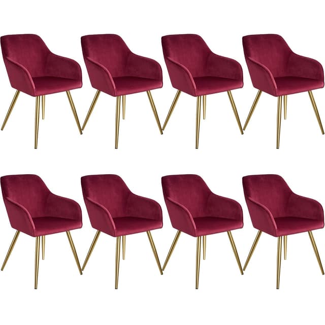 Denne elegante polstrede stilige aksentstolen fra tectake har et fløyelstrekk for å legge til glamour til hjemmet ditt. Denne spisestolens rike farge er et ekte blikkfang, og kan kombineres optimalt med ulike interiørstiler. Stolen har en robust stålramme som garanterer utmerket stabilitet og spenst, mens plasthettene på de fire føttene reduserer støy og forhindrer riper på rommets gulv. Ved siden av sitt attraktive utseende og eksepsjonelle materialegenskaper, lever dette smakfulle møblet med sine komfortable armlener og polstring også opp til forventningene når det gjelder komfort. Perfekt for både å slappe av i stuen eller å bruke ved spisebordet. Hvis du trenger en ny moderne stol som vil utmerke seg i både komfort og stil, trenger du ikke lete lenger enn til denne Marilyn-stolen med armlener fra tectake.