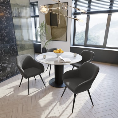 Den ergonomiske utformingen av det store seteskallet med gjennomgående arm- og ryggstøtte og den spesielt komfortable polstringen tilpasser seg perfekt til kroppen din og avlaster ryggen, slik at du kan sitte avslappet selv under lange middager.