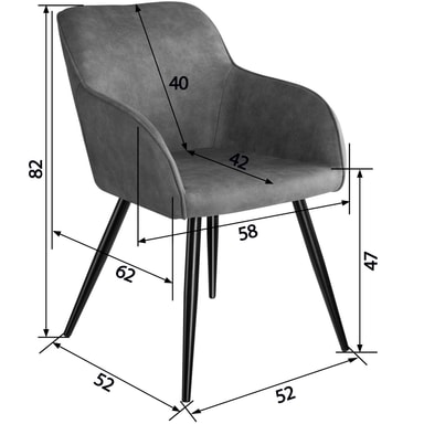 Med totalmål på ca 58 x 62 x 82 cm passer Marilyn spisestol perfekt inn i en rekke rom. Sitteflaten på ca 40 x 42 cm og setehøyden på ca 47 cm gir akkurat den rette blandingen av komfort og plass.