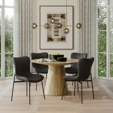 Den komfortable polstringen med høydensitetsskum gir en uforlignelig sitteopplevelse. Takket være det ergonomiske designet tilpasser stolene seg optimalt til enhver kropp og avlaster ryggen, selv under lange kvelder med venner og familie.