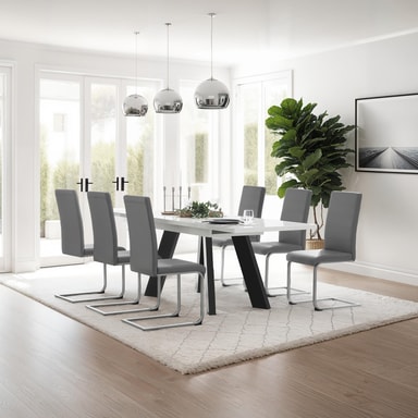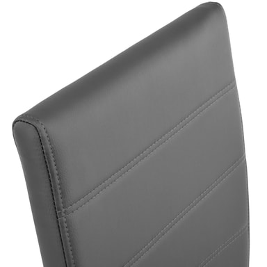 Med dette settet med 4 spisestuestoler fra tectake legger du til en tidløs sittegruppe til kjøkkenet, stuen eller kontoret. Disse attraktive, komfortable stolene med høy rygg vil også være et samlingspunkt rundt kafébord eller i et venterom. Disse polstrede stolene er godt laget, slitesterke, lette og enkle å rengjøre - perfekt for hektisk familieliv. Takket være den lette vekten er stolene enkle å flytte eller sette bort til oppbevaring. Den buede basen er laget av matt stål for å garantere stabilitet, og den komplementerer dekselet i imitert skinn perfekt. Spisestolens polstrede ryggstøtte støtter en oppreist holdning og gir ekstra komfort. Elegant, attraktiv design, veldig behagelig: dette settet med 4 spisestuestoler fra tectake vil sette prikken over i'en til ethvert rom og hjem.