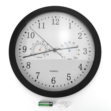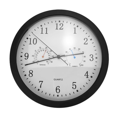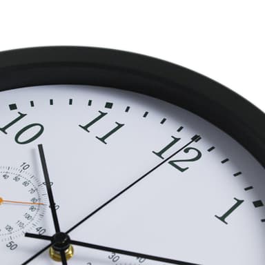 Denne klokken har termometer og hygrometer på urskiven, noe som kan være veldig nyttig. Fravær av tikking og annen støy sørger for god nattesøvn. Den stilige klokken passer perfekt som dekorasjon hvor som helst.