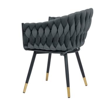 Stol FLORA grå fløyel. Setet og ryggen på stolen er trukket og dekket med fløyelsstoff. Den voluminøse bølgelignende polstringen til ryggstøtten oppnås ved hjelp av en veveteknikk. En liten ekstra pute på baksiden av stolen sørger for større sittekomfort. Putemål 38x28cm. Dekkmateriale: 100 % polyester, 260 g/m². Martindale 25 000. Stolens ben og ramme er laget av metall og ferdig med sort pulverlakk, de nedre endene av bena er gylne. De totale målene på stolen er 61x63xH83cm, setebredde 45cm, setedybde 46cm, setehøyde 50cm. Rygghøyde 38 cm. Vektgrense 120 kg.