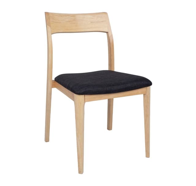 Stol LENA grå. Det lett polstrede setet er dekket med grått polyesterstoff. Gummitrebena og rammen er ferdig med lys eiketonelakk. De totale målene på stolen er 51,5x55,5xH83,5cm, setehøyde 46,5cm, setedybde 44cm.