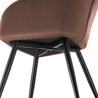 De slanke stålbeina til spisestuestolen er ikke bare estetisk tiltalende, men også svært robuste og holdbare. Dermed er møbelet svært stabilt og har en høy bæreevne. De gulvbeskyttende og sklisikre føttene sørger også for høy stabilitet på alle underlag.
