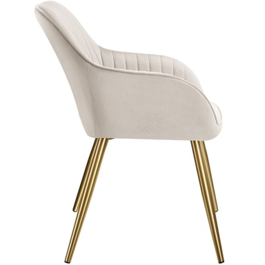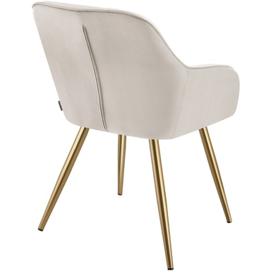 Spisestuestolen Marilyn fra tectake imponerer med sin vellykkede kombinasjon av mykt velourstoff med diskret quiltet mønster og de svært elegante, gylne stålbeina. Med dette blikkfanget blir hvert rom garantert en oase av velvære, der komfort og estetikk går hånd i hånd.