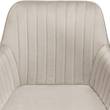 Det edle velourstoffet gir stolen en luksuriøs følelse mot huden, mens den ergonomiske utformingen lover en førsteklasses sitteopplevelse selv under lange middager. De gjennomgående arm- og ryggstøttene som omgir den romslige sitteflaten, samt den komfortable polstringen, gir deg optimal støtte for en sunn kroppsholdning.