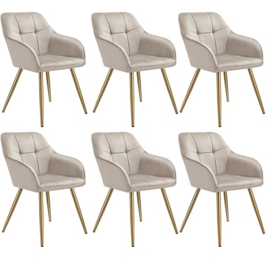 Stolen Marilyn fra tectake forener eksklusivt design med høyeste komfort. Det myke velourstoffet sørger ikke bare for en spesielt myk følelse, men understreker med sitt elegante quiltede mønster samtidig det stilfulle utseendet til sittemøbelet – enten på kjøkkenet eller i stuen, gir det hjemmet ditt en svært luksuriøs atmosfære.