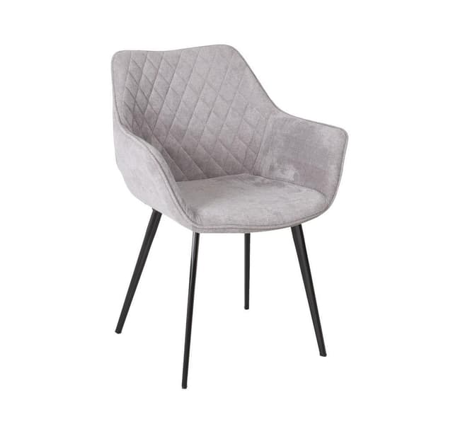 Stol NAOMI 61x60,5xH84cm, grå. Setet på stolen er lett polstret og dekket med grått stoff. Bena er laget av metall og avsluttet med svart pulverlakk. Vektgrense 100 kg.