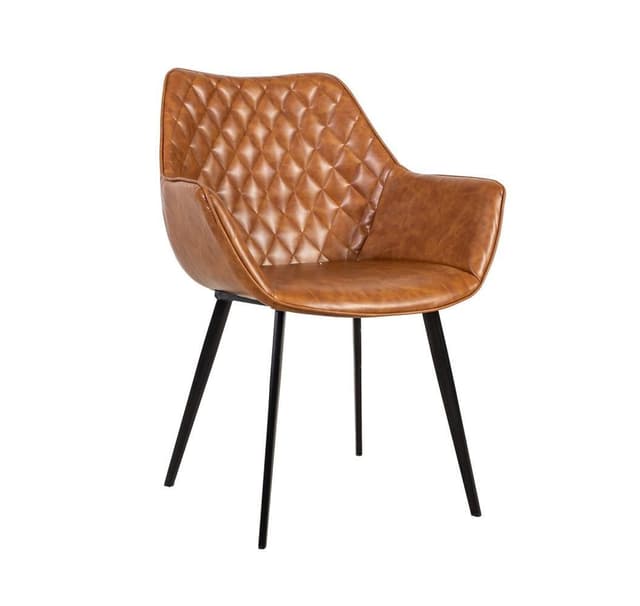 Stol NAOMI 61x60,5xH84cm, mørkegrå. Setet på stolen er lett polstret og dekket med lysebrunt imitert skinn. Bena er laget av metall og avsluttet med svart pulverlakk. Vektgrense 100 kg.