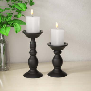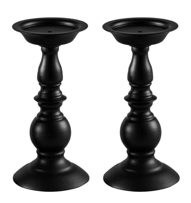 Utsøkt hjemmeinnredning: Denne store lysestaken i metall er et vakkert og elegant tillegg til ethvert hjem. Dens klassiske design og rike svarte farge vil utfylle enhver innredning, noe som gjør den til et perfekt midtpunkt for stuen, spisestuen eller soverommet.