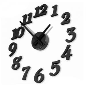 Veggklokke med store sifre Gjør-det-selv klokke som dere monterer sammen med hjelp av en mal. De selvheftende sifrene og urverket fester lett på en plan overflate. Et veggur som blir som et kunstverk på veggen. Klokken drives av 2 stk AA-batterier - inngår ikke.