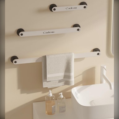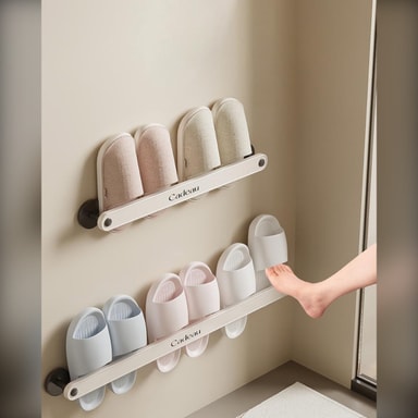 Maksimer plassen med denne veggmonterte håndkle-/skohyllen uten boring. Har hygienisk ventilasjon, sterk bæreevne og multifunksjonell bruk. Perfekt for å organisere håndklær, tøfler og mer på badet eller kjøkkenet. Laget av ABS+PS.Les mer om produktet