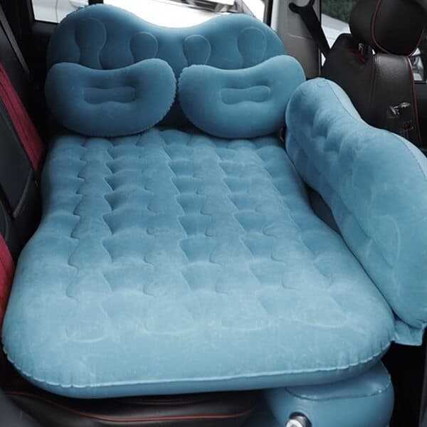 Nyt av en god natt søvn også i bilen! Med denne portable oppblåsbare bilmadrassen ligger du behagelig i baksetet på din bil, minivan eller lastebil når du er ute på tur. Reisemadrassen er laget av solid PNVC med myk overflate. Den bølgete oversiden gir god støtte for rygg, nakke, bein og kropp og gjør madrassen holdbar og robust. Med madrassens unike form utnyttes hele rommet i baksetet for at du skal få en så bred liggeflate som mulig. Med den medfølgende elektriske pumpen som enkelt kan kobles til bilens sigarettuttak blåser du raskt og smidig opp madrassen på bare noen minutter. Bilmadrassen er kompatibel med de fleste bilar og minivans.