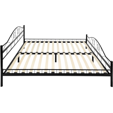 Denne pene metallsengen gir deg flotte drømmer og en rolig søvn. Stålrammen er robust og stabilt konstruert og passer gjennom hode- og fotendens skarpe design til hver rominnredning. Den innebygde spilen er laget i elastisk poppeltre. Gjennom den pulverlakkerte overflaten er sengerammen antistatisk og tåler dessuten støt og riper. Plastføttene beskytter underlagt.