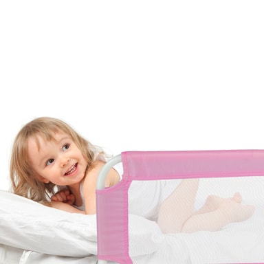 Denne praktiske kantbeskyttelsen for barnesenger beskytter barnet effektivt mot å falle ut av sengen.