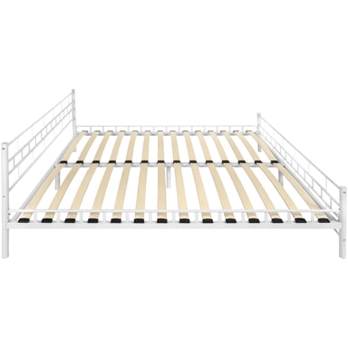 Denne pene metallsengen gir deg flotte drømmer og en rolig søvn. Stålrammen er robust og stabilt konstruert og passer gjennom hode- og fotendens skarpe design til hver rominnredning. Den innebygde spilen er laget i elastisk poppeltre. Gjennom den pulverlakkerte overflaten er sengerammen antistatisk og tåler dessuten støt og riper. Plastføttene beskytter underlaget.