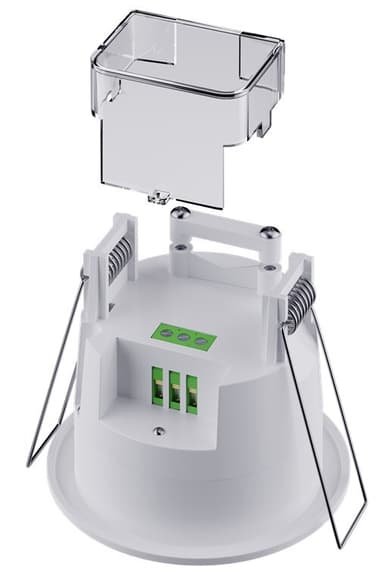 Med en deteksjonsvinkel på 360°, ideell for innfelt installasjon i hule tak, installasjonshøyde: 2,20 m til 4 m