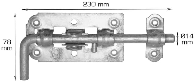 Mått: L230 x B78 x Ø14 mm Inkl skruvar Material: Galv.