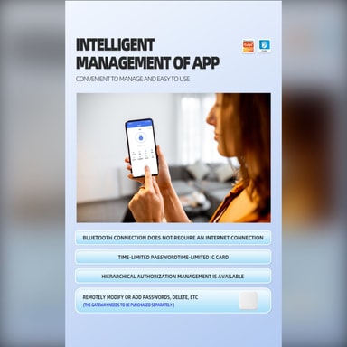 Versatile Application: Denne smarte dørlåsen er designet for allsidig bruk i forskjellige miljøer. Den er egnet for innendørs tredører i hjem, leiligheter, hoteller og skoler. Enkeltlåsdesignet gjør den enkel å installere og kompatibel med de fleste standard dørkarmer. Låsens robuste aluminiumslegeringskonstruksjon sikrer langvarig ytelse og motstand mot slitasje. Med en opplåsingslevetid på 100 000 ganger kan du stole på denne låsen i årevis med problemfri drift. Den medfølgende nøkkelbackupen gir et ekstra lag med sikkerhet og trygghet.