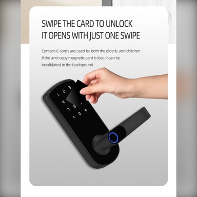 • Lås opp via TTLock Bluetooth-app, fingeravtrykk, passord, NFC, kort, nøkkel eller midlertidig passord.