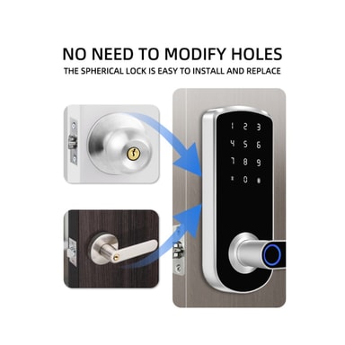Sikre hjemmet ditt med Smart Dørlås Fingeravtrykk Tuya. Har TTLock Bluetooth, fingeravtrykk, passord, NFC, kort, nøkkel og midlertidig passord opplåsing. Ideell for hjem, leiligheter, hoteller og skoler med innendørs tredører.Les mer om produktet