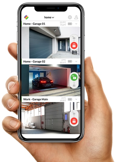Garasjeportene kan enkelt åpnes og lukkes ved hjelp av en virtuell bryter i den dedikerte appen. Videre vil du motta varslinger når portene åpnes, lukkes eller forlates åpne, og du kan bli varslet både via app og e-post. iSmartgate-appen er tilgjengelig for Android, iOS og watchOS.