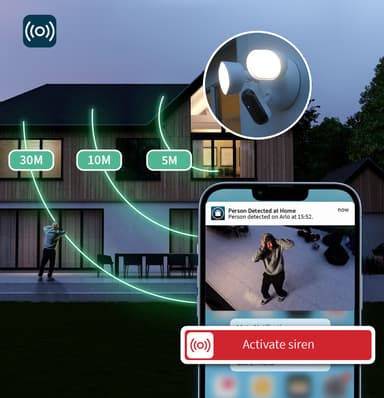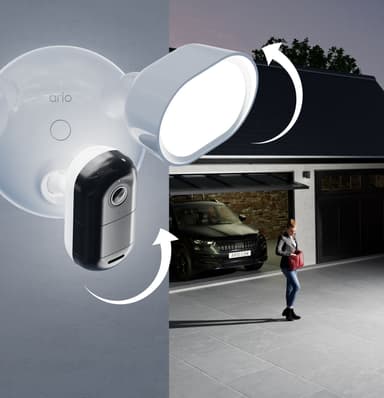 Arlo Floodlight 2K QHD kablet sikkerhetskamera gir klar 2K-video, 2000-lumens lys og fargenattvisning. Den har bevegelsesvarsler, toveis lyd og en sirene (automatisk/manuell) for pålitelig og fleksibel hjemmesikkerhet.Les mer om produktet