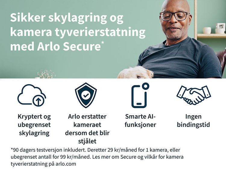 Vi tar beskyttelse alvorlig. Derfor inkluderer hver Secure-beskyttelse gratis tyveribeskyttelse. Hvis det mot formodning skulle skje og kameraet blir stjålet, så erstatter vi det.