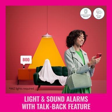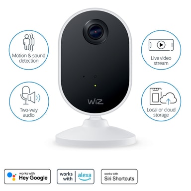 WiZ WiZDette innendørskameraet er det perfekte supplementet til belysningen, da de sammen utgjør en komplett løsning for både å forebygge innbrudd og oppdage, overvåke og bli informert om aktivitet i hjemmet - enten du er i nærheten eller langt hjemmefra. WiZ Kameraet kan plasseres hvor som helst og utløses av bevegelse, lyd og appen. Det har nattsyn slik at du kan se i mørket, det gir deg tilgang til lagrede videoopptak (f.eks. hvis du trenger bevis), og med toveis lyd kan du avskrekke inntrengere eller tilby hjelp. WiZ Alle disse funksjonene er selvfølgelig innebygd i appen, akkurat som du er vant til.