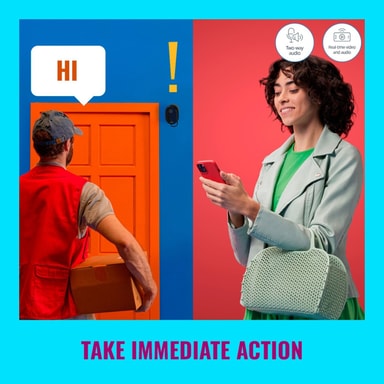 WiZAutomatiske varsler om hendelser gjør at du kan handle umiddelbart uansett hvor du befinner deg - ved å aktivere toveiskommunikasjon, slå på alle lysene eller utløse en lysalarm. WiZ Alle funksjoner er selvfølgelig integrert i appen, akkurat slik du kjenner den.