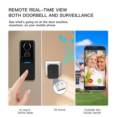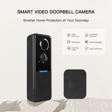 Forbedre hjemmesikkerheten din med denne svarte trådløse video dørklokken. Funksjoner inkluderer HD-video, toveis lyd, nattsyn, bevegelsesdeteksjon og gratis skylagring av bilder. Perfekt for 24/7 overvåking og fjernkommunikasjon.Les mer om produktet